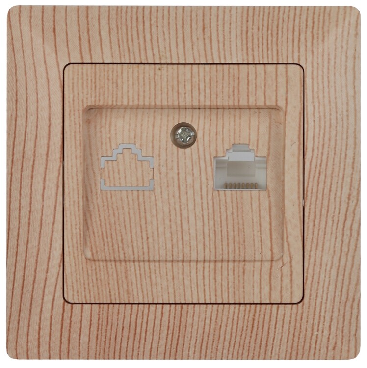 Розетка RJ45 серии Intro Solo скрытой установки цвет сосна 4-303-11. Розетка выполнена из термопласта, укомплектована одноместной рамкой. Для установки 2-х и более устройств в несколько подрозетников в ряд дополнительно используются многоместные рамки: 2-х постовая - 4-502-хх, 3-х постовая 4-503-хх, 4-х постовая - 4-504-хх (где хх - цветовой код: 01 - белый, 02 - слоновая кость, 03 - алюминий, 04 - шампань, 05 - антрацит, 10 - венге, 11 - сосна).