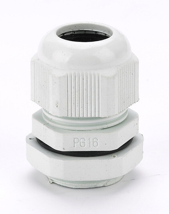 Кабельный ввод серии КВ-101 DEKraft, типа PG 16 диаметр кабеля - от 6 до 13 мм, цвет - белый, материал - пластик, степень защиты - IP54, количество в упаковке - 20 шт. Кабельный ввод состоит из фиксирующей гайки, корпуса, уплотнения из нейлона, а также из уплотнителя и прокладки из неопрена. Кабельные вводы имеют химическую стойкость к соленой воде, слабым кислотам, маслам, нефтепродуктам и основным растворителям. Конструкция кабельных вводов позволяет пропускать кабель без его демонтажа.