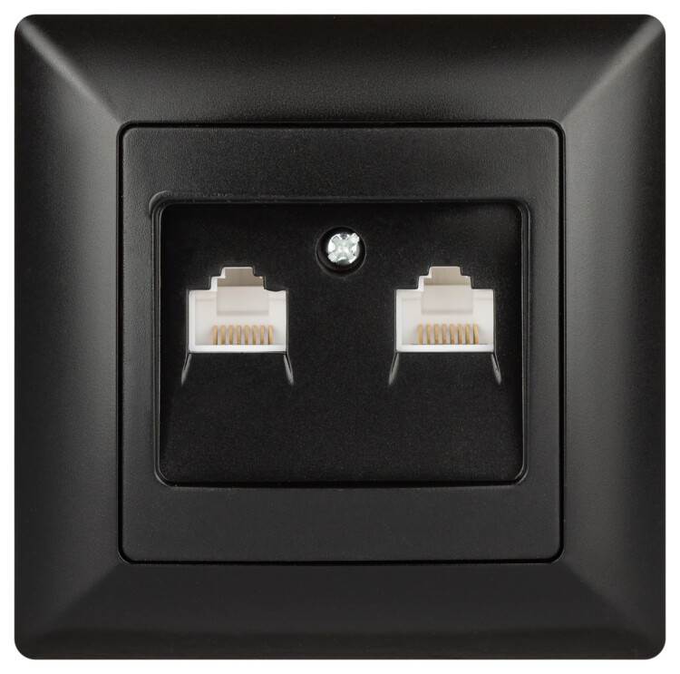 <p>Розетка информационная на два порта 2xRJ45, серии Solo, скрытой установки 4-304-05 цвет антрацит. Выполнена из термопластика, укомплектована одноместной рамкой.</p>