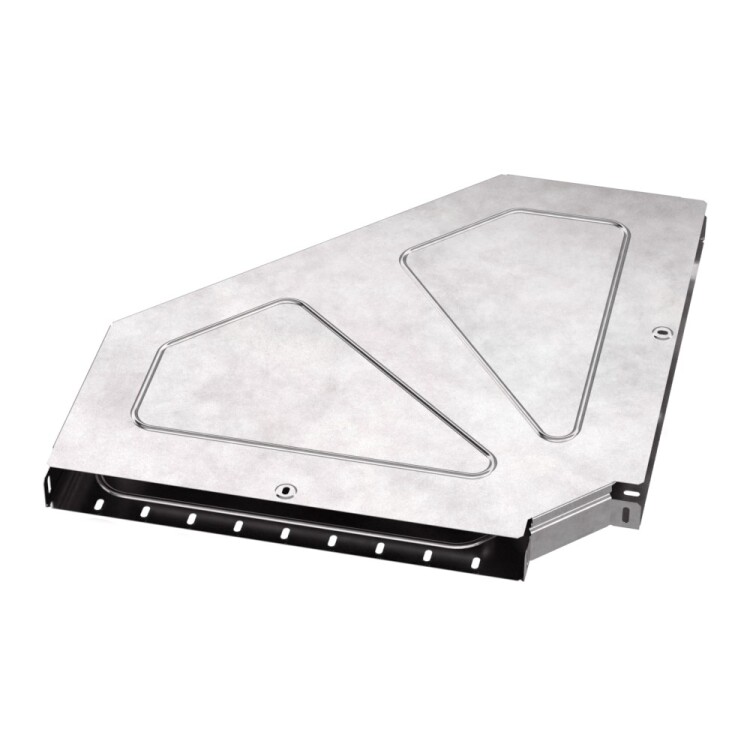 Аксессуары изготовленные из стали с защитным покрытием по методу Сендзимира – это изделия, на которых защитное цинковое покрытие было нанесено на листовую сталь перед изготовлением. Толщина защитного покрытия варьируется от 10 до 22мкм. Климатическое исполнение изделий УХЛ2, что предусматривают эксплуатацию в помещении и под навесом, при температуре эксплуатации от -80 до +150°С. Угол горизонталь ный 90 градусов предназначен для поворота кабельных трасс в горизонтальном направлении на 90 градусов, для перфорированных и глухих лотков. В комплект входит крышка.