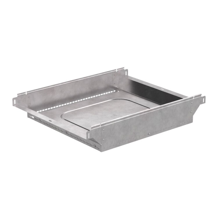Аксессуары изготовленные из стали с защитным покрытием по методу Сендзимира – это изделия, на которых защитное цинковое покрытие было нанесено на листовую сталь перед изготовлением. Толщина защитного покрытия варьируется от 10 до 22мкм. Климатическое исполнение изделий УХЛ2, что предусматривают эксплуатацию в помещении и под навесом, при температуре эксплуатации от -80 до +150°С. Ответвитель Т-образный вертикальный применяется для обеспечения полноразмерного ответвления горизонтальной кабеленесущей системы из лотков металлических в вертикальном направлении.