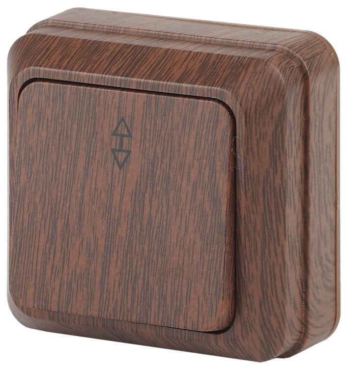 <p>Проходной выключатель (переключатель) 1-клавишный серии Intro Quadro открытой установки цвет венге 2-103-10. Номинальные характеристики 10А 250В . Выключатель выполнен из качественного термопласта, стали и латуни, оснащён винтовыми зажимами.</p>