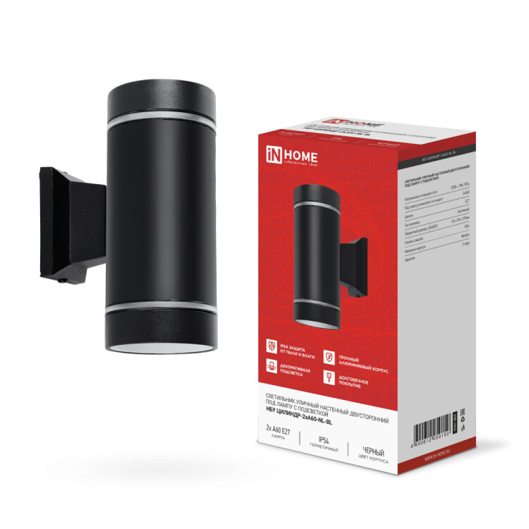 Светильники уличные настенные серии ЦИЛИНДР под лампу A60 c цоколем E27 c подсветкой предназначены для акцентной подсветки загородных домов и коттеджей.