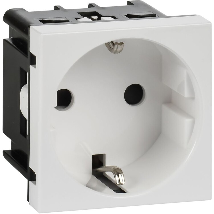 Розетка электрическая штепсельная с винтовыми зажимами предназначена для присоединения однофазных электрических потребителей к сети переменного тока напряжением 250В~ и частотой 50/60 Гц. Розетка поставляется с лицевой панель и устанавливаются в кабель-каналы DLP и Metra посредством соответствующих суппорт-рамок и в систему организации рабочих мест (лючки и колонны). Цвет: белый.