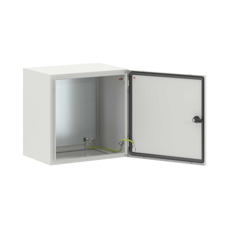 Навесные корпуса серии STE предназначены для систем автоматизации и распределения электроэнергии. Корпус, дверь, фланец серии STE изготавливаются из листовой стали толщиной 1,5 мм с атмосферостойким порошковым покрытием, цвет RAL7035. Монтажная плата изготовлена из оцинкованной стали толщиной 1,8 мм. Степень защиты IP66, ударопрочность IK10, сейсмостойкость 9 баллов по шкале MSK-64, климатическое исполнение УХЛ1, ОМ2, ОМ3, группа горючести Г1. Комплект поставки: корпус, дверь реверсивная, монтажная плата с двунаправленной разметкой, поворотный замок 1 шт., сплошной фланец для ввода кабеля 1 шт., комплект заземления с проводами заземления. Габариты 400x400x300 (ШхВхГ) мм.