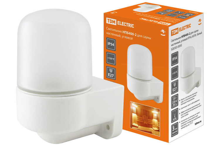 Светильник НПБ400-2 для сауны настенный, угловой, IP54, 60 Вт, белый, TDM