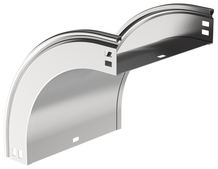 Поворот на 90° вертикальный внешний плавный предназначен для организации вертикального внешнего поворота кабельной трассы на 90°. Крышка аксессуара в комплект не входит. Аксессуар изготовлен из стали горячего цинкования методом Сендзимира (защитный слой цинка не менее 10 мкм).