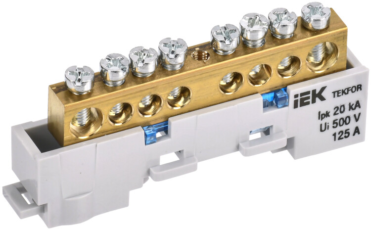 Контактная часть шин выполнена из латуни, прижимные винты из оцинкованной стали, изолятор из негорючего пластика.