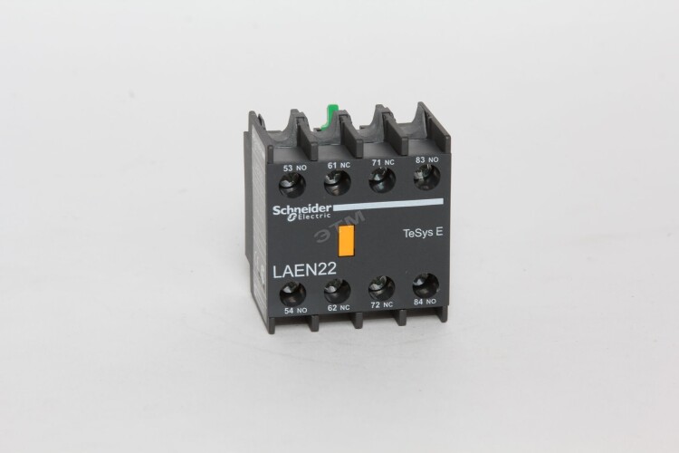 Блок вспомогательных контактов мгновенного действия серии EasyPact TVS Schneider Electric, 2НО + 2НЗ, номинальный ток до 10 А, номинальное напряжение до 690 В, монтаж - защелкой на передней панели контактора, присоединение - винтовые зажимы.