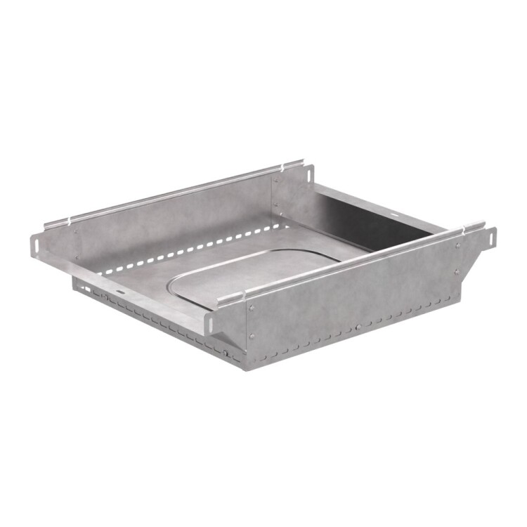 Аксессуары изготовленные из стали с защитным покрытием по методу Сендзимира – это изделия, на которых защитное цинковое покрытие было нанесено на листовую сталь перед изготовлением. Толщина защитного покрытия варьируется от 10 до 22мкм. Климатическое исполнение изделий УХЛ2, что предусматривают эксплуатацию в помещении и под навесом, при температуре эксплуатации от -80 до +150°С. Ответвитель Т-образный вертикальный применяется для обеспечения полноразмерного ответвления горизонтальной кабеленесущей системы из лотков металлических в вертикальном направлении.