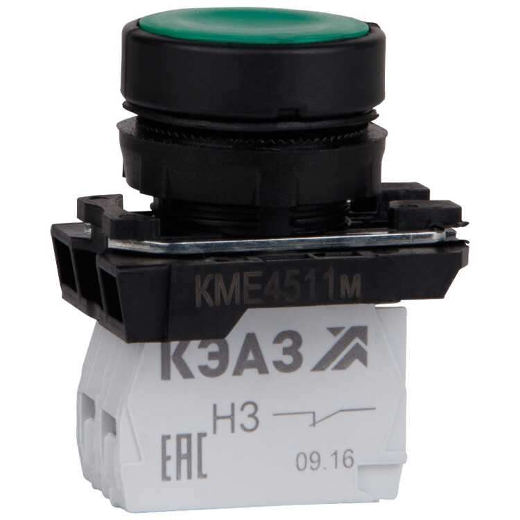 Выключатели кнопочные серии КМЕ и КПЕ состоят из управляющего устройства (привода) и унифицированных съемных управления переменного тока до 660 В, частотой 50 и 60 Гц и постоянного тока до 440 В.