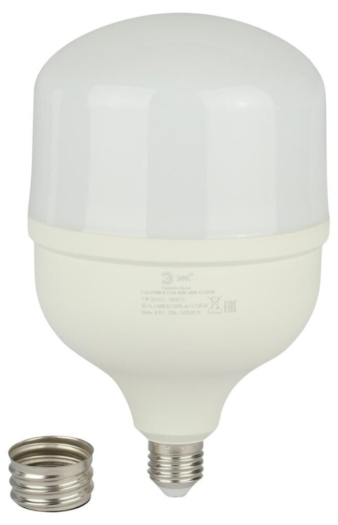 Светодиодная лампа ЭРА LED POWER T140-85W-4000-E27/E40 с большой мощностью - 85 Вт, аналог лампы накаливания 650 Вт. Экономит до 90% электроэнергии. Эффективна для освещения производственных, торговых, складских, выставочных помещений. Отличается грамотно продуманной системой охлаждения. Светит нейтральным белым светом. Светоотдача - 6800 Лм. Срок службы - 30 лет. Гарантия - 2 года. В комплекте специальный проводник, к оторый позволяет использовать лампу с патроном E27 или E40.