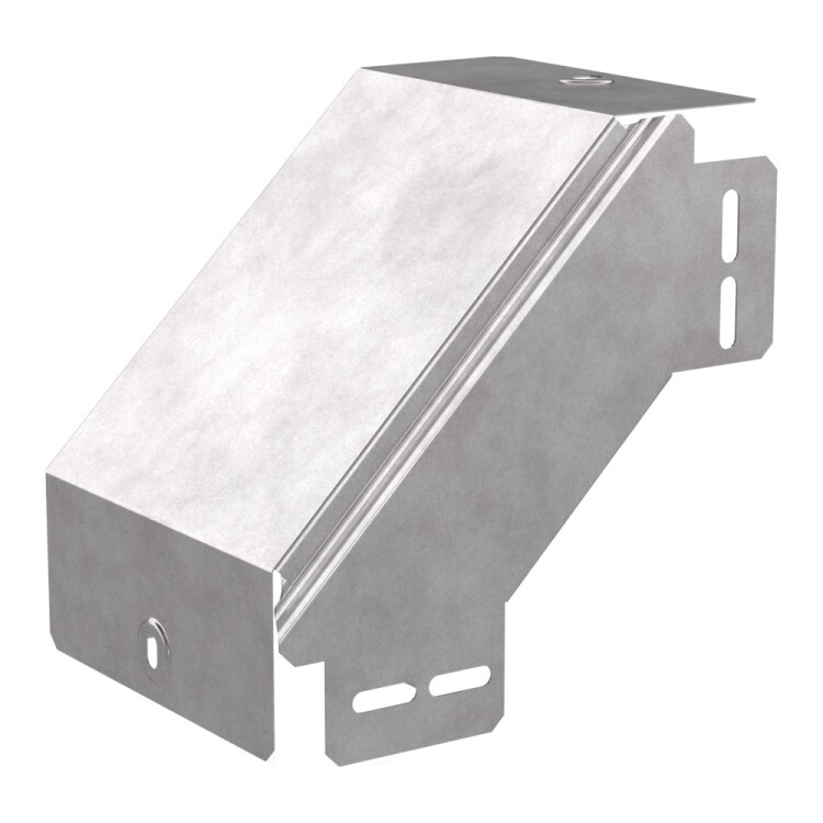 Аксессуары изготовленные из стали с защитным покрытием по методу Сендзимира – это изделия, на которых защитное цинковое покрытие было нанесено на листовую сталь перед изготовлением. Толщина защитного покрытия варьируется от 10 до 22мкм. Климатическое исполнение изделий УХЛ2, что предусматривают эксплуатацию в помещении и под навесом, при температуре эксплуатации от -80 до +150°С. Угол вертикальный внешний 90 градусов предназначен для спуска кабельных трасс на 90 градусов, для перфорированных и глухих лотков. В комплект входит крышка.
