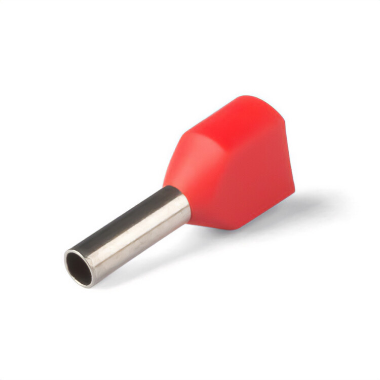 Наконечник штыревой втулочный изолированный двойной НШВИ(2). Используется для оконцевания методом опрессовки сдвоенных многопроволочных медных проводников одинакового сечения от 0,5 мм? до 16 мм?. Трансформирует концы многожильных проводов в монолитные штифты.