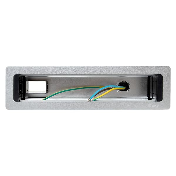 Встраиваемый настольный розеточный блок, 10 модулей, C-Line. Настольный розеточный блок – изделие прямоугольной формы, предназначенное для размещения ЭУИ на уровне поверхности стола. Розеточный блок монтируется в предварительно подготовленное отверстие 241х62 для 10 модулей. Сетевой кабель питания (2 метра) и крепеж в комплекте. На задней стенке розеточного блока предусмотрено дополнительное отвер стие для подведения слаботочных кабельных линий.