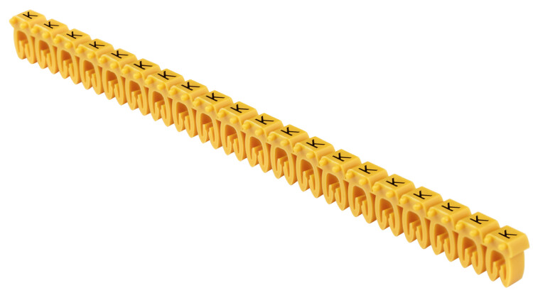 Маркер кабельный открытого профиля типа KE предназначен для цифровой и цветовой маркировки проводов и кабелей сечением 0,75-1,5мм2. Изготовлен из эластичного материала, позволяющего произвести надежную и быструю фиксацию на проводниках.