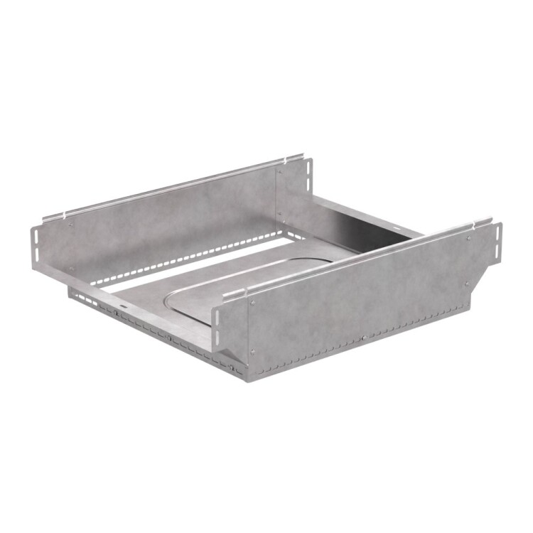 Аксессуары изготовленные из стали с защитным покрытием по методу Сендзимира – это изделия, на которых защитное цинковое покрытие было нанесено на листовую сталь перед изготовлением. Толщина защитного покрытия варьируется от 10 до 22мкм. Климатическое исполнение изделий УХЛ2, что предусматривают эксплуатацию в помещении и под навесом, при температуре эксплуатации от -80 до +150°С. Ответвитель Т-образный вертикальный применяется для обеспечения полноразмерного ответвления горизонтальной кабеленесущей системы из лотков металлических в вертикальном направлении.