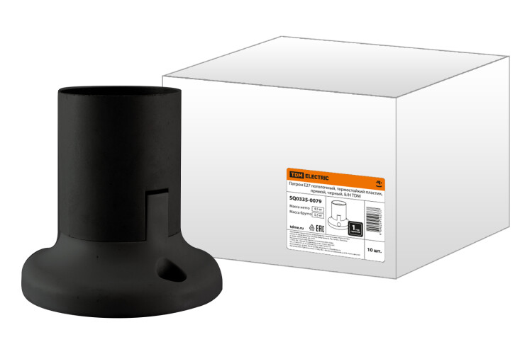 Патрон Е27 потолочный, термостойкий пластик, прямой, черный, Б/Н TDM