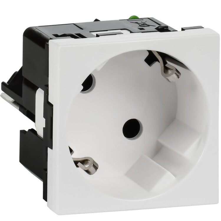 Розетка электрическая штепсельная с безвинтовыми зажимами предназначена для присоединения однофазных электрических потребителей к сети переменного тока напряжением 250В~ и частотой 50/60 Гц. Розетка поставляется с лицевой панель и устанавливаются в кабель-каналы DLP и Metra посредством соответствующих суппорт-рамок и в систему организации рабочих мест (лючки и колонны). Цвет: белый.