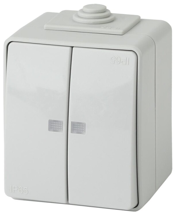 <p>Выключатель влагозащищённый 2-клавишный с подсветкой серии Эра Эксперт накладн IP65 цвет серый 11-1605-03. Номинальные характеристики 10А 250В. Выполнен из качественного поликарбоната, оснащён уникальными винтовыми клеммами ЭКСПЕРТ для максимально качественного зажима кабеля в механизме.</p>