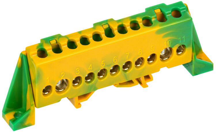 Контактная часть шин выполнена из латуни, прижимные винты из оцинкованной стали, изолятор из негорючего пластика.