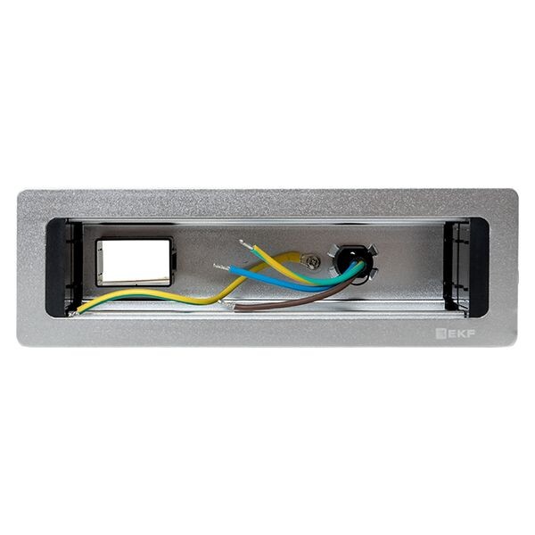 Встраиваемый настольный розеточный блок, 8 модулей, C-Line. Настольный розеточный блок – изделие прямоугольной формы, предназначенное для размещения ЭУИ на уровне поверхности стола. Сетевой кабель питания (2 метра) и крепеж в комплекте. На задней стенке розеточного блока предусмотрено дополнительное отверстие для подведения слаботочных кабельных линий.