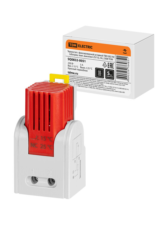 Термостат с фиксированной уставкой ТФУ-002 NC (обогрев, темп. выкл/вкл 25/15), 5 А, 230 В TDM