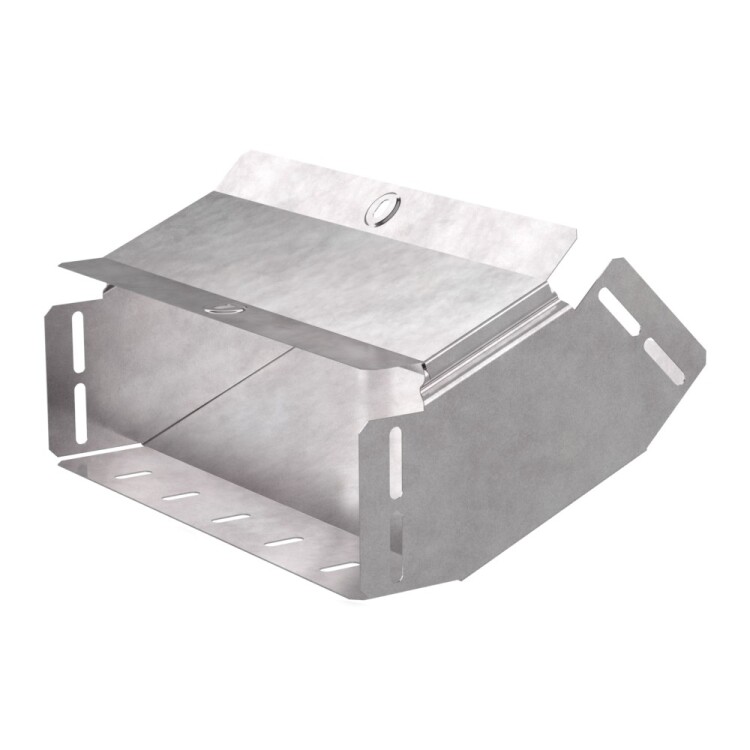 Аксессуары изготовленные из стали с защитным покрытием по методу Сендзимира – это изделия, на которых защитное цинковое покрытие было нанесено на листовую сталь перед изготовлением. Толщина защитного покрытия варьируется от 10 до 22мкм. Климатическое исполнение изделий УХЛ2, что предусматривают эксплуатацию в помещении и под навесом, при температуре эксплуатации от -80 до +150°С. Угол вертикальный внутренний 45 градусов предназначен для подъема кабельных трасс на 45 градусов, для перфорированных и глухих лотков. В комплект входит крышка.