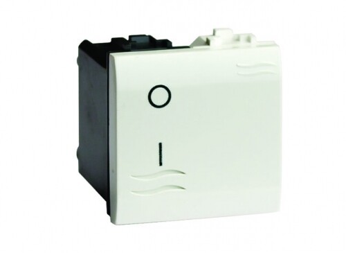 Выключатель двухполюсный с подсветкой. Назначение- включение/выключение освещения. Характеристики- номинальный ток ? 16 А, номинальное напряжение ? 250 B. Кол-во модулей- 2. Цвет- белый