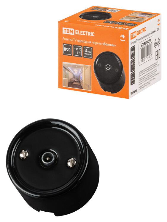 Розетка TV проходная черная «Болонь» TDM