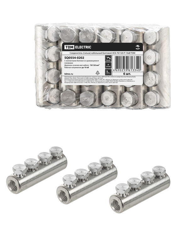 Соединитель (гильза) кабельный болтовой 4СБ-70/120-Р-10кВ TDM