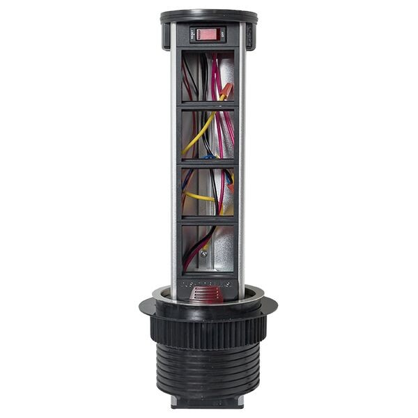 Встраиваемая мини-колонна с беспроводной зарядкой 15 Вт, 8 модулей C-Line. Встраиваемая мини-колонна с беспроводной зарядкой – это изделие цилиндрической формы с ручным выдвижным механизмом, предназначенное для установки ЭУИ стандарта 45х45. Верхняя крышка мини-колонны оснащена беспроводной зарядкой для электронных девайсов. Беспроводное зарядное устройство считывает данные с контроллера питания подключенного девайса и подбирает оптимальные и безопасные выходные параметры тока и напряжения. Изделие поставляется в комплекте с сетевым кабелем питания (2 метра). В нижней крышке колонны предусмотрены 2 дополнительных кабельных ввода. Монтаж производится в предварительно подготовленное отверстие диаметром ?95-100 мм. Допустимая толщина поверхности стола 10-45 мм.
