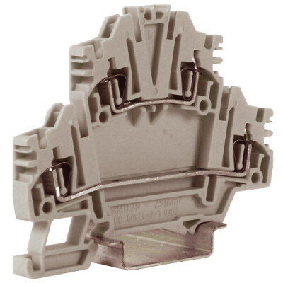 Двухуровневый зажим предназначен для многоуровневой коммутации слаботочных цепей и устанавливается на рейку типа OMEGA
