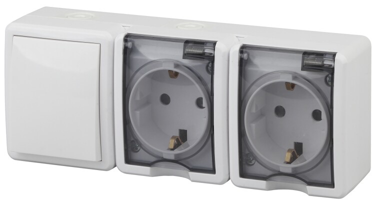 <p>Блок две розетки с выключателем IP54 Эра Эксперт открытой установки белый 11-7403-01. Номинальные характеристики 16А(10AX) 250В. Устройство выполнено из качественного поликарбоната, оснащёно уникальными винтовыми клеммами для максимально качественного зажима кабеля в механизме.</p>