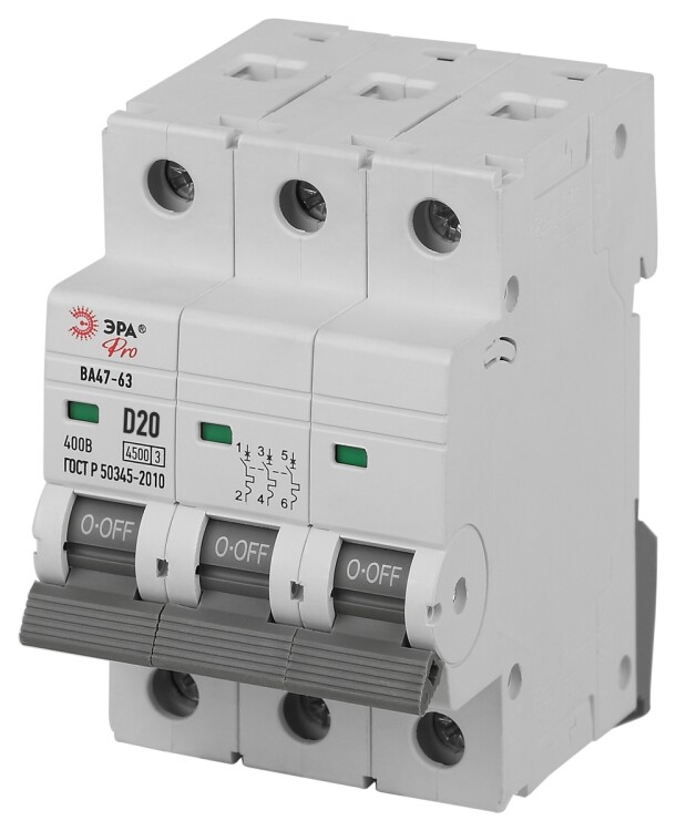 <p>Автоматический выключатель - контактный коммутационный аппарат, способный включать токи, проводить их и отключать при нормальных условиях в цепи, а также включать, проводить в течение нормированного (заданного) времени и автоматически отключать токи при нормированных ненормальных условиях в цепи, таких, как токи короткого замыкания. Автоматические выключатели бывают одно-, двух-, трёх- или четырёхполюсными и имеют следующие конструктивные узлы: главную контактную систему, дугогасительную систему, привод расцепляющего устройства, расцепители. Автоматические выключатели ВА47-63 предназначены для защиты распределительных и групповых цепей, имеющих различную нагрузку: электроприборы, освещение выключатели с характеристикой В; двигатели с небольшими пусковыми токами (компрессор, вентилятор) выключатели с характеристикой C; двигатели с большими пусковыми токами (подъемные механизмы, насосы) выключатели с характеристикой D.</p>