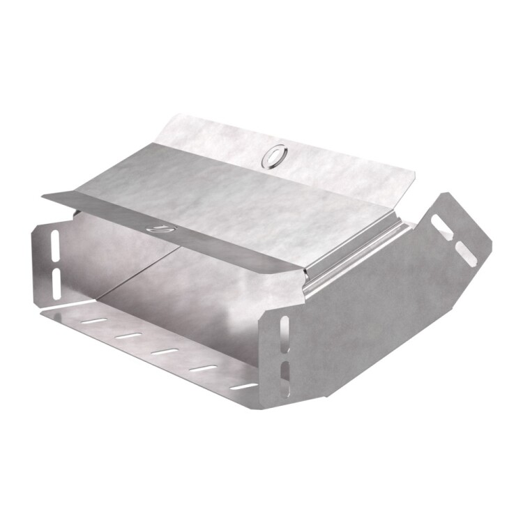 Аксессуары изготовленные из стали с защитным покрытием по методу Сендзимира – это изделия, на которых защитное цинковое покрытие было нанесено на листовую сталь перед изготовлением. Толщина защитного покрытия варьируется от 10 до 22мкм. Климатическое исполнение изделий УХЛ2, что предусматривают эксплуатацию в помещении и под навесом, при температуре эксплуатации от -80 до +150°С. Угол вертикальный внутренний 45 градусов предназначен для подъема кабельных трасс на 45 градусов, для перфорированных и глухих лотков. В комплект входит крышка.