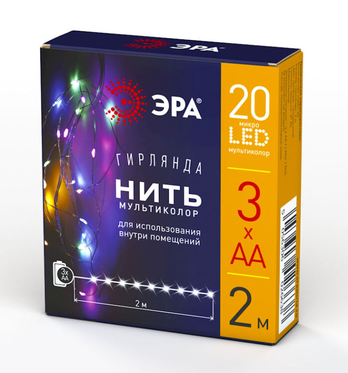 ENIN-2M ЭРА Гирлянда LED Нить 2 м мультиколор, АА, IP20 (120/3840)
