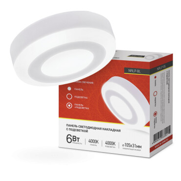 Накладные потолочные светодиодные панели NRLP-BL ТМ IN HOME с тремя режимами работы подходят как для общего освещения, так и для точечной подсветки помещений. В зависимости от необходимости вы можете включать отдельно: основной свет (центральная панель), подсветку (кольцо по периметру), либо основной свет и подсветку одновременно. Это позволит не только регулировать степень освещенности помещения, но и оптимизировать расходы на электроэнергию. Панели NRLP-BL обеспечивают яркий равномерный свет с коэффициентом пульсации менее 5%, который не вызывает усталости глаз и соответствует всем нормам СанПиН по качеству освещения. Корпус изготовлен из высококачественного негорючего пластика. ЭПРА поставляется в комплекте. Панель NRLP-BL может устанавливаться практически на любом виде поверхности, включая натяжные потолки, так как он не нагревается даже при длительном использовании. Светильник экологически безопасен и не требует специальной утилизации. Применение Светодиодные панели NRLP-BL предназначены для установки в жилых (квартиры, дома, дачи), офисных, торговых и других общественных помещениях. Преимущества - Три режима работы - Сверхъяркие экономичные светодиоды - Высококачественные, экологически безопасные материалы - Отсутствие мерцания - ЭПРА в комплекте - Долгий срок службы (30 000 часов) - Доступная цена Монтаж Светодиодные панели NRLP-BL предназначены для накладного потолочного монтажа.