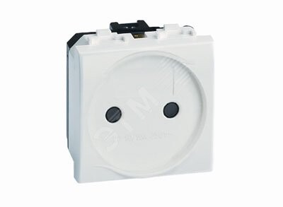 Силовая электрическая розетка штекерная, без заземления со шторками. Назначение- подключение оргтехники, бытовых приборов и т. п. Характеристики- в соответствии с ПУЭ, пункт 7.1.49 ? имеются защитные шторки, автоматически закрывающие гнезда штепсельной розетки при вынутой вилке, имеется заземление, диаметр отверстий для ввода кабелей ? 3 мм (по 2 отверстия на клемму), номинальный ток ? 16 А, номинальное напряжение ? 250 B. Кол-во модулей- 2. Цвет- слоновая кость