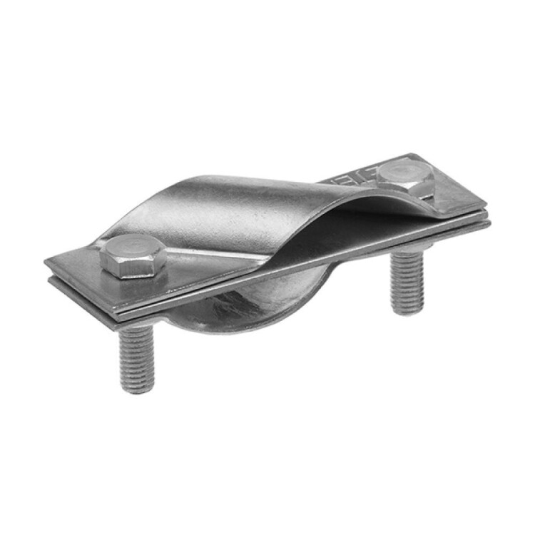 Арт. 62825. Зажим заземления стержень — стержень диагональный, оцинк.Зажим используется для соединения стержня заземления со стержнем Т-образным способом. Он стягивается при помощи двух шестигранных болтов с гайками из нержавеющей стали с резьбой М8.