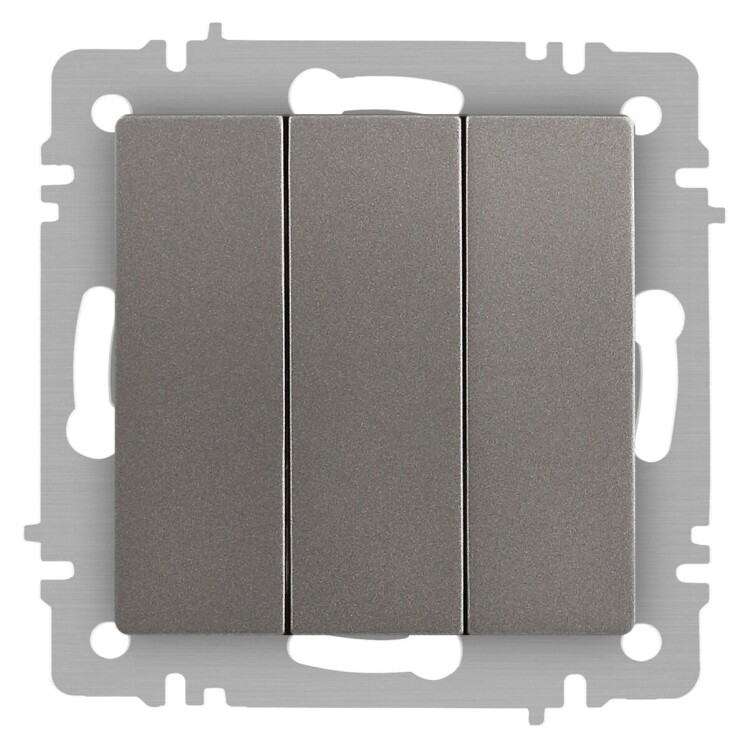 <p>Выключатель 3-клавишный серии Intro Accent скрытой установки механизм цвет титан 6-106-09. Номинальные характеристики 10А 250В. Выполнен из негорючего термопласта, оснащён винтовыми клеммами. Парные клеммы обеспечивают соединение шлейфом. Монтаж в подрозетник производится и на лапки, и на винты. Рамка приобретается отдельно. В серии представлены рамки до 5 постов: на 1 пост - 6-501-хх, на 2 поста - 6-502-хх, на 3 поста - 6-503-хх, на 6 поста - 4-504-хх, на 5 постов - 6-505-хх (где хх - цветовой код: 01 - белый, 01М - матовый белый, 02 - слоновая кость, 03 - алюминий, 04 - шампань, 05 - антрацит, 06 - перламутр, 07 - графит, 08 - бронза, 09 - титан, 10 - венге, 11 - сосна)</p>