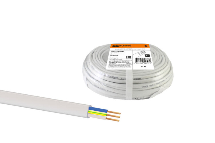 Шнур ШВВП 3х0,5 ГОСТ (10м), белый TDM