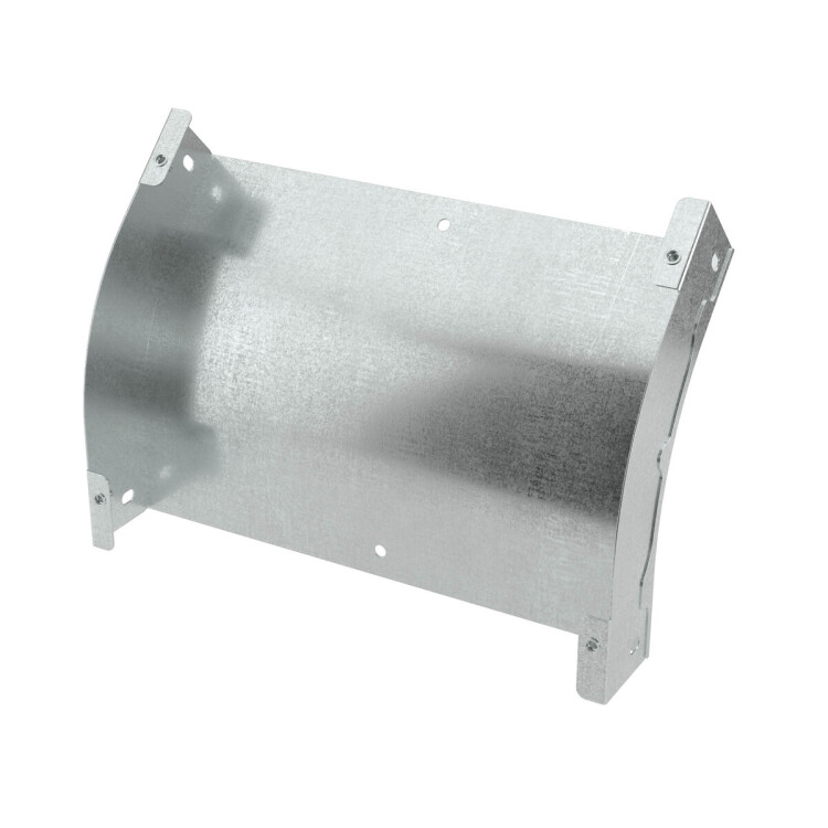 Угол вертикальный внешний 45° применяется для организации поворота трассы вниз на 45°. В состав комплектного аксессуара входят крепежные элементы, необходимые для качественного и надежного монтажа. Ширина – 100 мм, высота – 35 мм, толщина стали – 0,8 мм. Аксессуар выполнен в исполнении ""цинк-ламель"" – это высококоррозионностойкое покрытие, в состав которого входят алюминий, цинк и магний. Процесс нанесения покрытия выполняется непосредственно на промышленной линии горячего цинкования. Скорость окисления у алюминия ниже, чем у цинка, за счет чего, при той же толщине защитного слоя, цинк-алюминиевое покрытие имеет более высокую коррозионную стойкость, чем стандартное горячеоцинкованное покрытие. Соответствует 8 классу коррозионной стойкости.