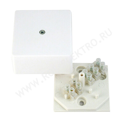 Винтовые клеммники, установленные внутри коробки, имеют пять пар зажимов, которые позволяют надежно зажимать проводники сечением от 1.5 до 6 кв.мм. При этом проводник с цельнотянутой жилой зажимается в клеммнике без предварительной подготовки (надо только снять изоляцию), а проводники с многопроволочной жилой необходимо предварительно или облудить или опрессовать трубчатым наконечником соответствующего сечения. В случае необходимости, клеммники можно снять с основания коробки, потянув их вверх препедикулярно проскости основания.