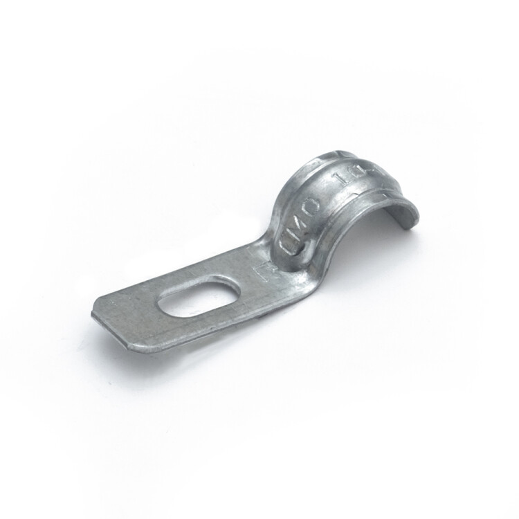 Скоба металлическая однолапковая усиленная противопожарная (СМОУ), предназначена для крепления металлорукава, металлических и пластиковых труб к различным несущим поверхностям, а также для монтажа кабельной продукции. Изготавливается с овальным отверстиями 10х5мм (скобы диаметром от 6 до 40мм), и 10х6мм (скобы диаметром от 48-63мм), что обеспечивает возможность установки самореза с пресс-шайбой диаметром 4,2мм. Конструкция скоб соответствует ГОСТ 17678-80. Скобы металлические изготавливаются из оцинкованной стали (по ГОСТ 14918), толщиной от 0,9 до 1,9мм. Применяются в ОКЛ.
