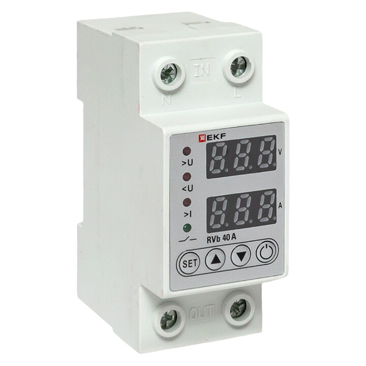Цифровое реле напряжения и тока RVb предназначено для автоматического отключения подключенной через него нагрузки, если значение напряжения или тока в электросети выйдет за допустимые пределы. Прибор управляется микроконтроллером, который анализирует напряжение и ток в электросети и отображает текущие действующие значения на цифровых индикаторах. Коммутация нагрузки осуществляется электромагнитным реле. Допустимые пределы отключения напряжения, тока и время задержки включения устанавливаются пользователем с помощью кнопок. Значения сохраняются в энергонезависимой памяти.
