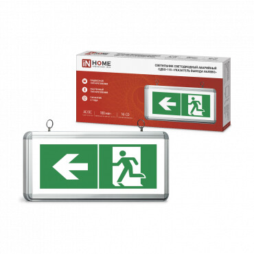 СДБО-115 "УКАЗАТЕЛЬ ВЫХОДА НАЛЕВО" ТМ IN HOME – это односторонний аварийный светильник (указатель) на сверхъярких светодиодах в корпусе из прочного алюминия. Его основное предназначение – обеспечение эвакуационного освещения в случае аварии или пожара. Может устанавливаться в жилых, общественных, производственных помещениях (при температуре от +1 до +40°C). Может работать как от электросети, так и от встроенного никель-кадмиевого аккумулятора (время зарядки 24-48 часов). Способен функционировать в автономном режиме в течение 180 минут. Обладает встроенной защитой от разрядки аккумулятора. Устанавливается настенным (накладным), либо подвесным способом (на подвес при помощи монтажных колец, входящих в комплект). Срок службы – 30 000 часов. Гарантия – 2 года.