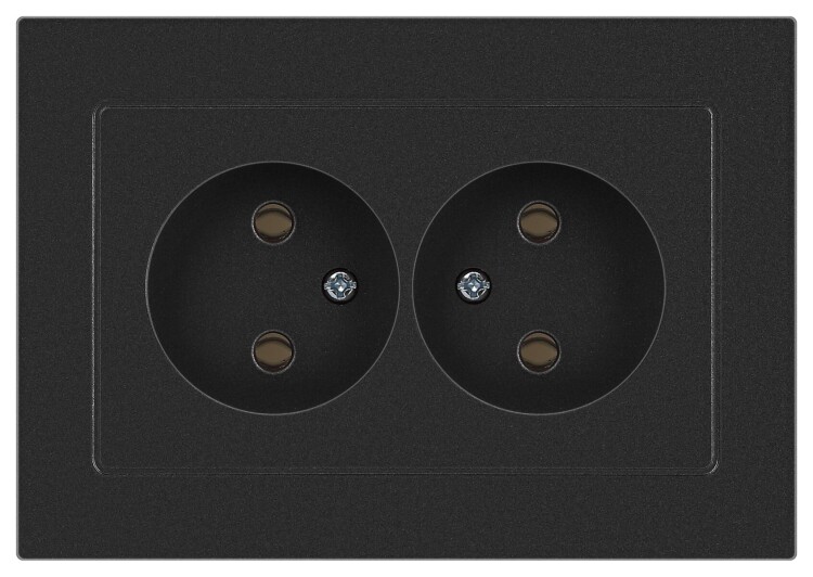<p>Розетка двойная без заземления серии Intro Accent скрытой установки цвет графит 6-204-07. Номинальные характеристики 16А 250В. Выполнена из негорючего термопласта, оснащена винтовыми клеммами. Парные клеммы обеспечивают соединение шлейфом. Монтаж в подрозетник производится и на лапки, и на винты.</p>