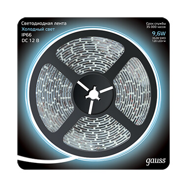 Лента LED 2835/120-SMD 9.6W 12V DC холодный белый IP66 (блистер 5м), Тип 2835, 9,6Вт, 12В