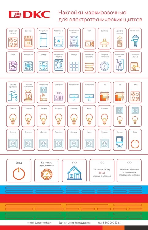 Наклейки предназначены для маркировки оборудования в электрощитах. Размер основных наклеек 17х28 мм2 90 влагостойких наклеек на листе.